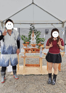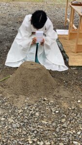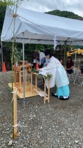神主さんにお越しいただき、土地の神様をお迎えしてお清めをしていただきました。